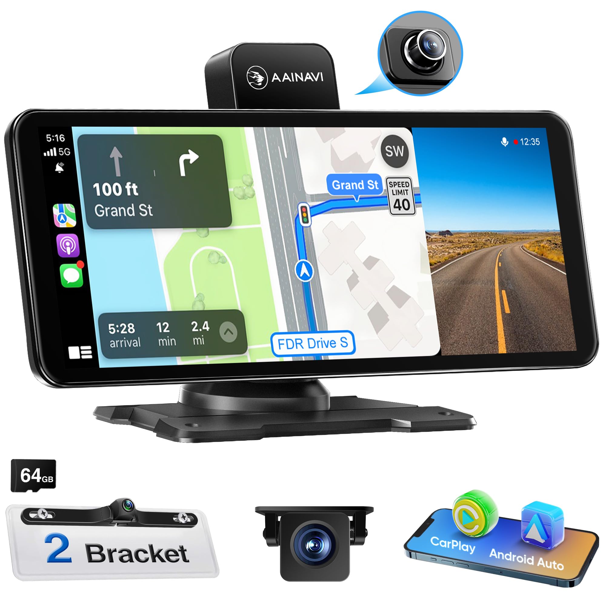 A AINAVI 10.26″ Portable Car Radio with 4K ADAS Dash Cam