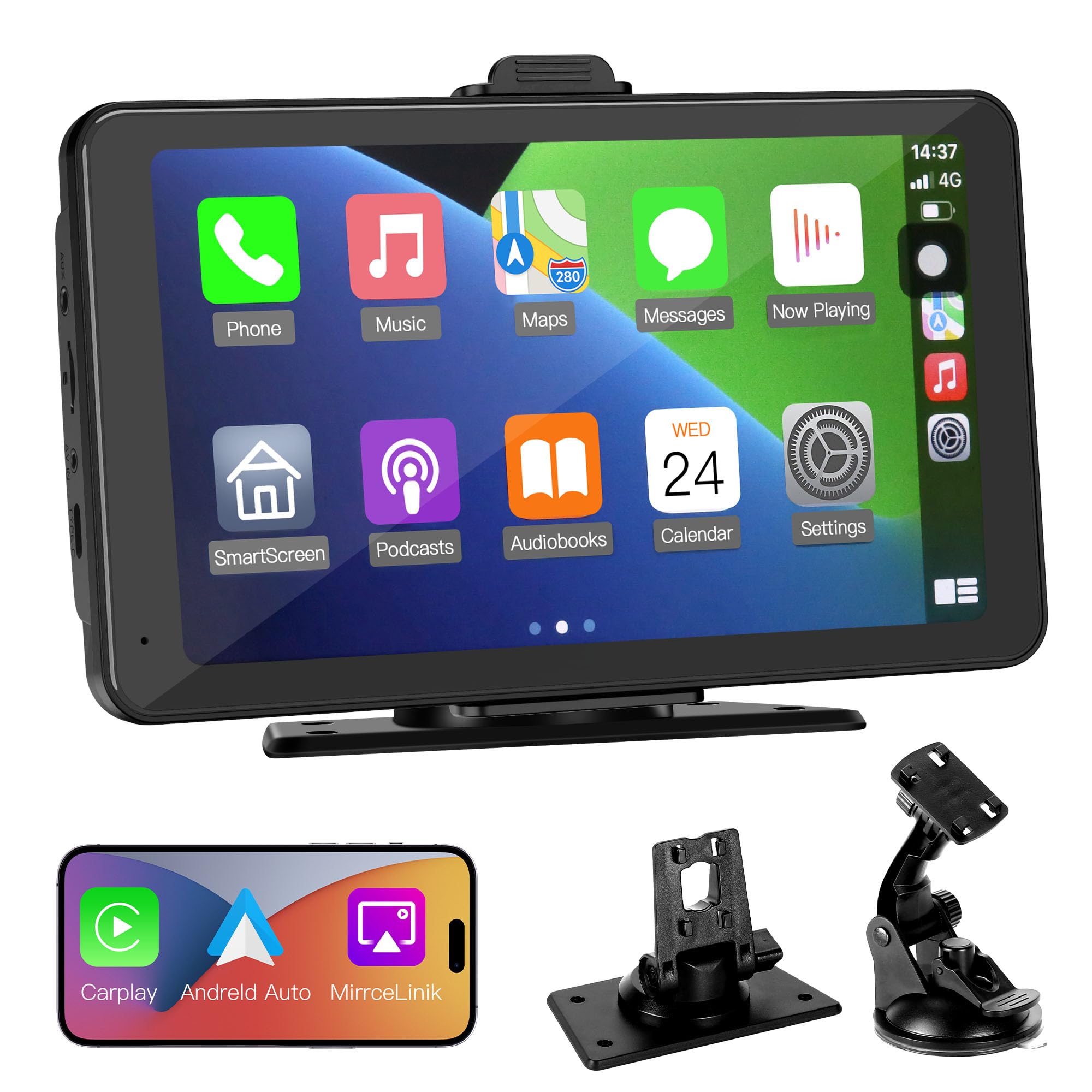 - The 7-inch IPS touchscreen is clear and easy to operate. You can even synchronize your phone’s screen to the carplay screen with Android and iOS.